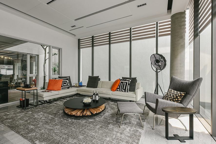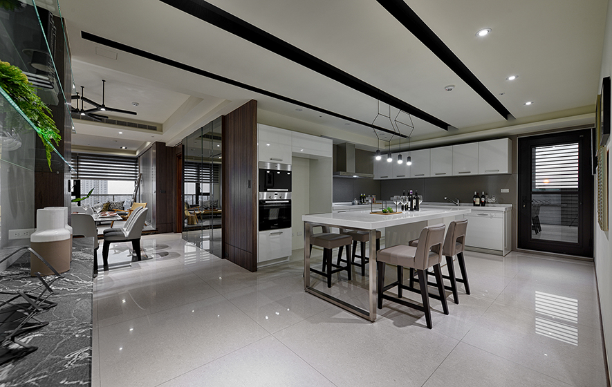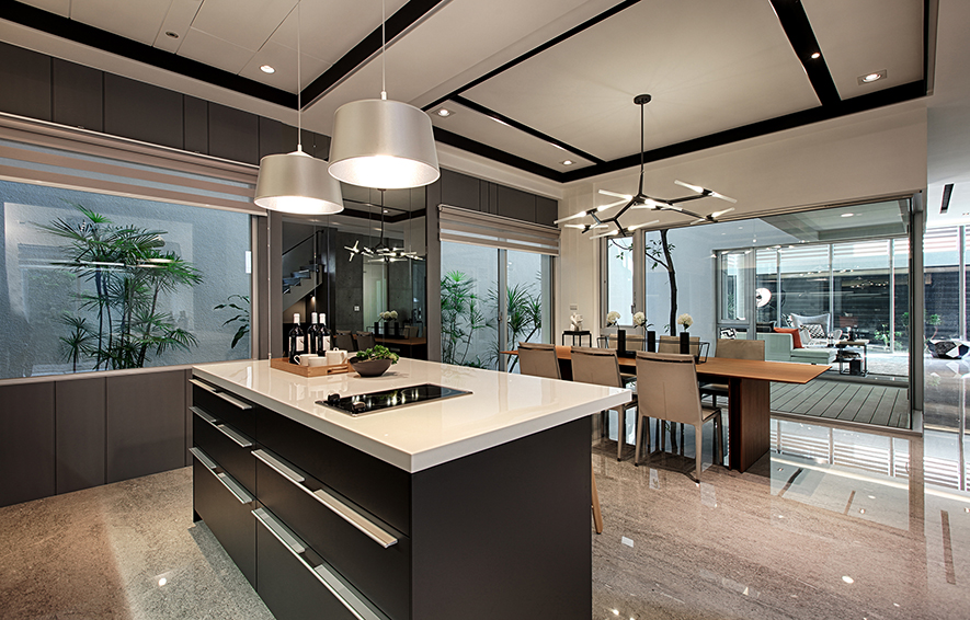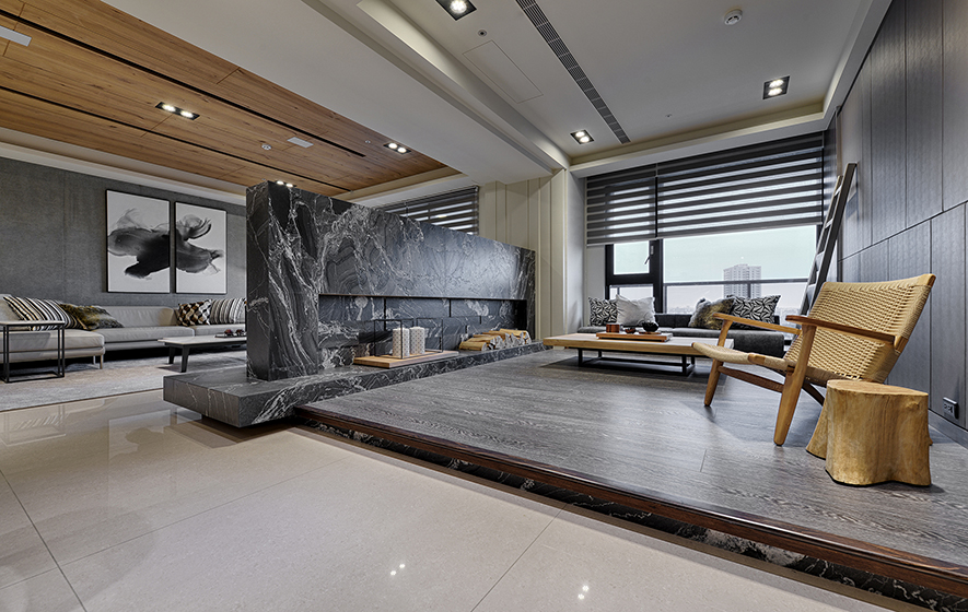 詠絮設計 在透天住宅《靚境》當中,發揮「在家即可享受綠意」的設計核心理念,配合良好採光的多面落地窗,形塑一層一景的特殊複合風格,攜手如山水畫般深淺墨色交織,佐上質樸木石建材紋理的《晨煙暮靄》,雙雙拿下室內裝飾官方評選獎項,風光凱旋!