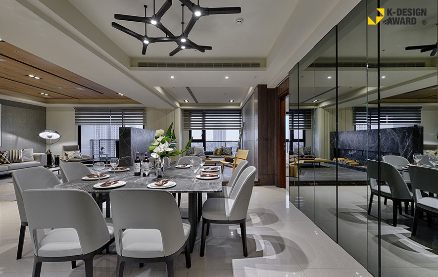 詠絮室內設計 秉持「在家即可享受綠意」為核心理念,善用建物的多面落地窗,形塑出「一層一景」、充滿驚喜變化的透天住宅《靚境》,而於《晨煙暮靄》一作中,則以質樸的木石紋理交織深淺墨色,暈染一片雲霧繚繞的山水風光;兩座大氣十足的優美宅邸,雙雙攫獲一眾評審青睞,再度於國際間打響品牌知名度!