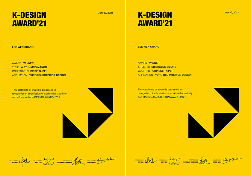 「亞洲三大設計獎」之一的韓國K-DESIGN AWARD,以「美感、獨創、實際性」三大端點,長期以來繼承全球設計者的高度評價,每年更在「產品工業」、「空間/建築」及「傳達設計」三項領域,遴選出頂尖超絕的卓越設計,讓賽事中強調的「創新能量」為當代設計帶來雋永的價值!2021年K-Design Award設計大獎,共收到來自全球21個國家、3087份的參賽作品,約11%的參賽作品(315個設計)被選為獲勝者。