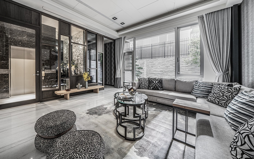 詠絮室內設計 於作品《蘊光》中,運用石材、鐵件與鏡材切割的不同畫面,並相互映襯反射,展現華麗壯觀的大氣樣貌,豐富肌理與色彩的和諧搭配,吸引一眾評審目光,獲得「最佳樣品屋」銀獎榮譽,為品牌再添一筆佳績!