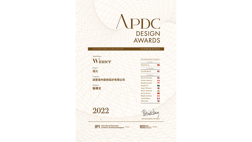 APDC亞太設計中心是室內設計聯合國組織IFI國際室內建築師設計師團體聯盟的全球成員,核心會員由活躍於大中華地區乃至亞太地區的全球優秀建築師、室內設計師、產品設計師構成。而由該組織發起的APDC AWARDS,自2010年起每年舉行一次,今年已來到第13屆,是亞太地區最重要的獎項之一,曾與全球多個著名設計獎項,並就賽事獲獎作品相互輸送簽訂了友好合作協議。