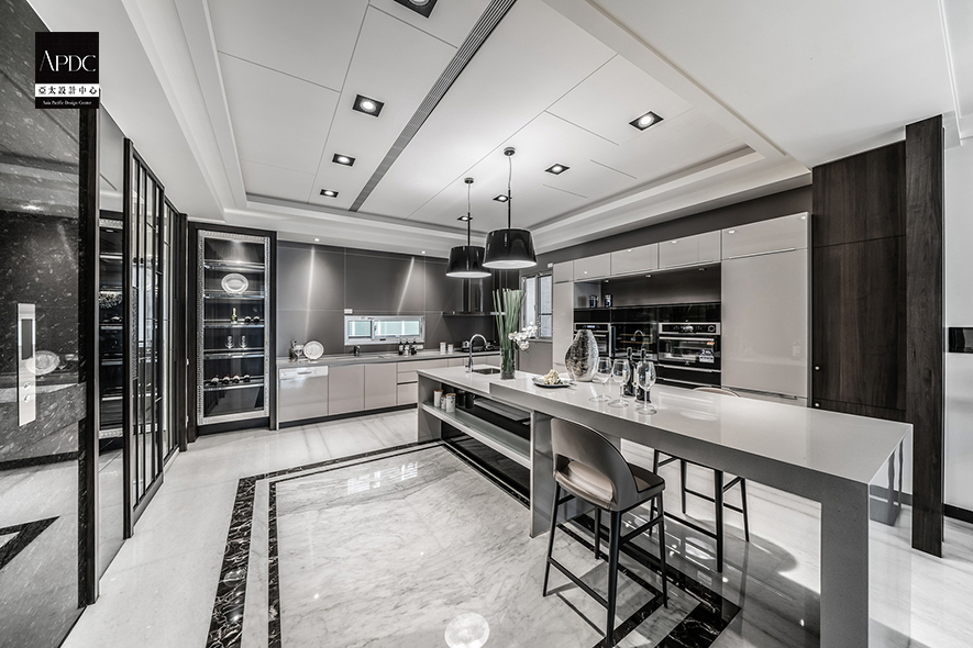 詠絮室內設計 將建築簡約潔白的外觀延伸入內,在方正寬敞的明亮格局中,透過石材、鐵件和鏡材形塑細膩大氣的氣質,譜出肌理與色彩相互交織的和諧美作《蘊光》,摘下本屆「樣板房空間類」大獎,驚艷眾人目光!
