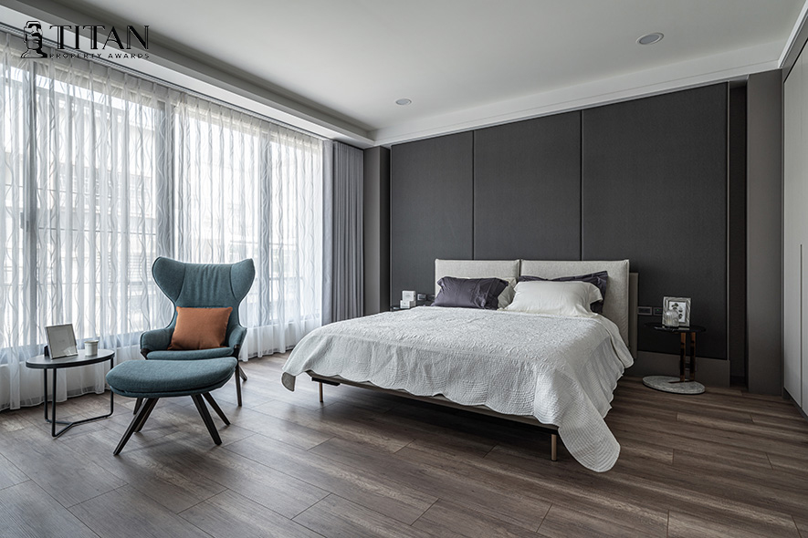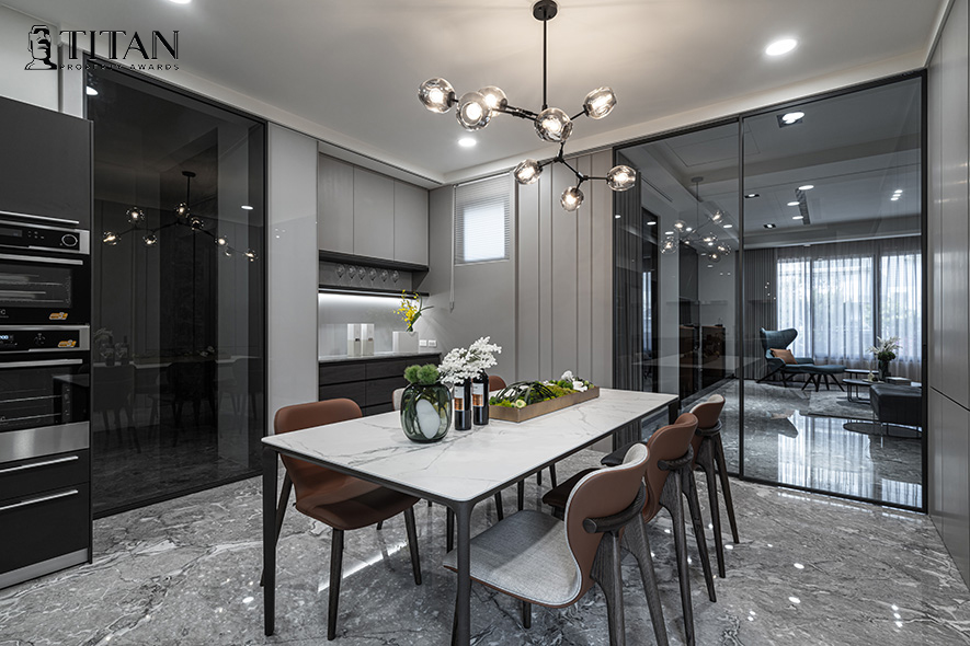 詠絮室內設計 以形構區域的獨特性為設計核心,公領域巧搭大理石材和業主鍾情的灰、藍色,呈遞大氣富麗的氣派感,私領域則依居者喜好,勾勒風格各異的專屬空間,簡雅迷人的宅邸《寧奢靜界》榮獲2023 TITAN Property Awards金獎,新添品牌榮譽!